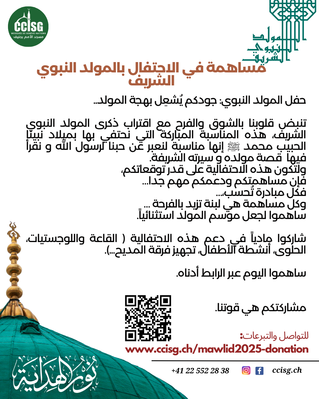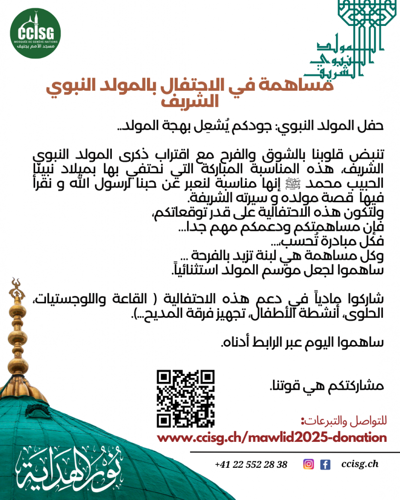 >>> Ou en espèces directement à la Mosquée de Genève-Nations