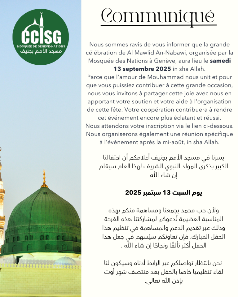 L’objectif de la Mosquée de Vermont à Genève est de vous faire découvrir les nobles œuvres que nous accomplissons dans l’intérêt des musulmans et des non musulmans de la ville de Genève et ses environs.