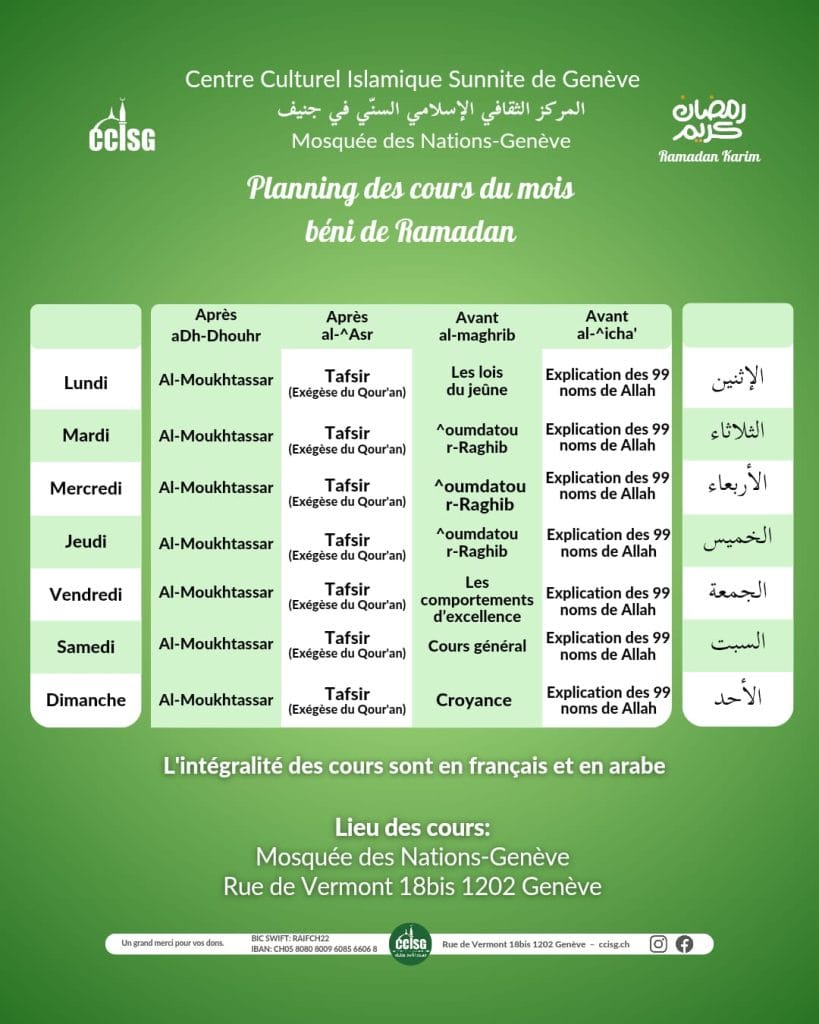 © 2026. CCISG, Centre Culturel Islamique Sunnite de Genève. Mosquée Genève-Nations.